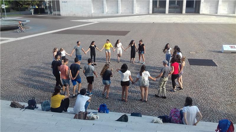 Mit einem spontanen gemeinsamen Tanz auf dem Bozner Gerichtsplatz vor dem umgestalteten Mussolini-Relief des Südtiroler Künstlers Hans Piffrader und unter Hannah Arendts Zitat "Niemand hat das Recht zu gehorchen" endete kürzlich der Südtirol-Aufenthalt einer ethnisch gemischten Gruppe von Jugendlichen aus Jerusalem.