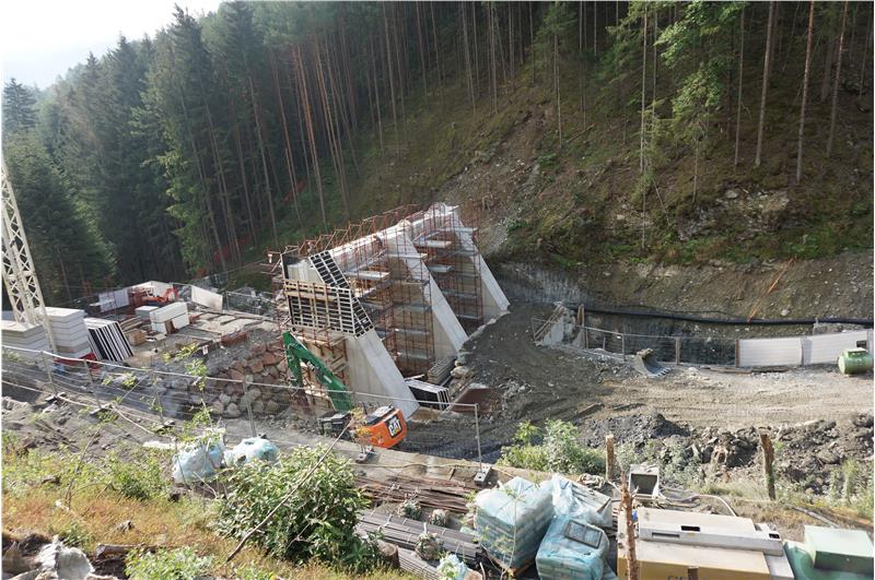 Bei Baubeginn im vergangenen Herbst musste die Forststraße, die ins Schalderer Tal führt, im Bereich der Baustelle provisorisch verlegt werden. Im Sommer kommenden Jahres, wenn voraussichtlich alle Arbeiten abgeschlossen sind, wird die Forststraße endgültig neu angelegt.