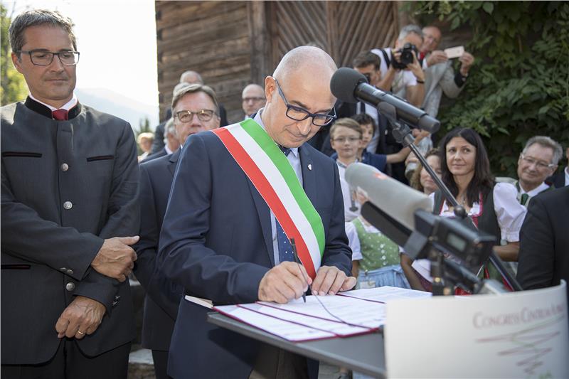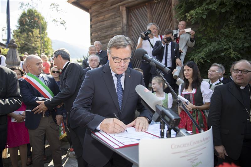 "Der Alpenraum ist die am stärksten von Naturkatastrophen betroffene Region Europas", sagte auch der Tiroler Landeshauptmann Günther Platter. Gleichzeitig werde viel über Digitalisierung und E-Mobilität gesprochen. Beides benötigt aber Strom. Daher gelte es, sich auch Gedanken darüber zu machen, woher die Energie der Zukunft komme und wie man sie bestmöglich speichern könne. "Wir dürfen in diesem Thinktank der Europaregion nicht nur nachdenken, sondern uns auch über Initiativen freuen, die uns gelungen sind", sagte Platter. Gemeinsam mit dem Präsidenten des Gemeinderates der Stadt Mantua Massimo Allegretti unterzeichneten die Vertreter der Landesregierungen die Absichtserklärung über den Bau eines gemeinsamen Euregio-Denkmals für Andreas Hofer in Mantua. Dieses soll in der Porta Giulia direkt neben dem bestehenden Andreas-Hofer-Denkmal errichtet werden, die Arbeiten sollen spätestens zum 210. Todestag von Andreas Hofer am 20. Februar 2020 abgeschlossen sein.