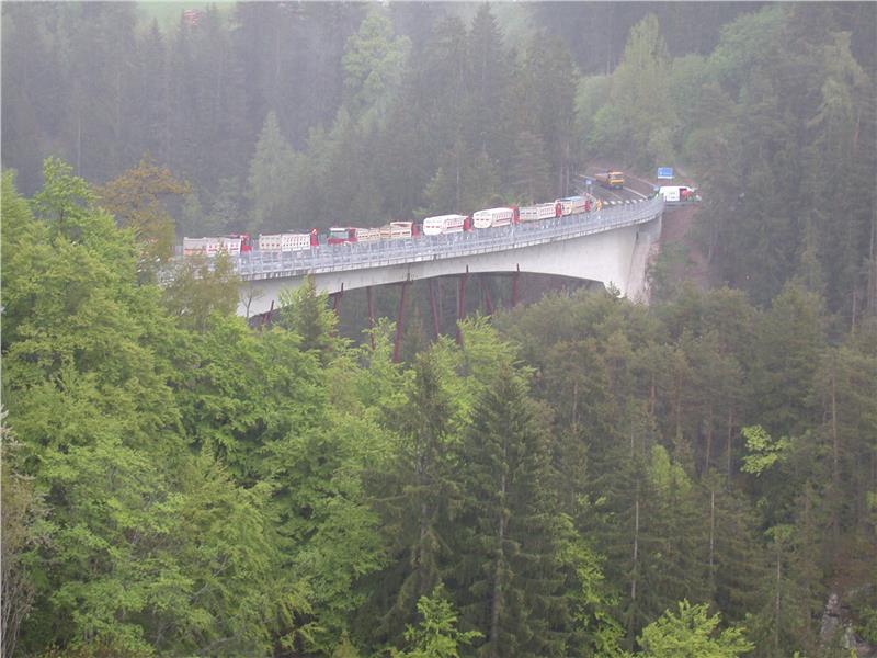 Im Durchschnitt werden pro Jahr an 40 Brücken Belastungsproben für die Abnahme durchgeführt. Die Landesabteilungen Straßendienst und Tiefbau haben in den vergangenen Jahren eine besondere Methode gefunden, die Belastbarkeit der Brücken zu checken. In einem ersten Schritt wird der Zustand der Brücke auf Bildern festgehalten. Jedes Detail wird fotografiert. Damit Vergleiche möglich sind, werden alle Defekte nach einem eigenen Schema festgehalten. Mit präzisen technischen Instrumenten und natürlich mit Fahrzeugen (mit Sand beladene LKWs) messen die Mitarbeiter der Landesabteilungen Tiefbau und Straßendienst die Elastizität der Brücke, die Auskunft darüber gibt, wie belastbar das Bauwerk noch ist. Durch diese Untersuchungen kann sofort bestimmt werden, ob die Brücke künftig von schwereren Fahrzeugen passiert werden kann oder ob eine noch strengere Gewichtsbeschränkung notwendig ist. Das Land investiert pro Jahr und 200.000 Euro in diese Proben.