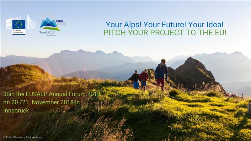 Die Projekte sind in englischer Sprache bis spätestens 31. Oktober 2018 online (E-Mail: pitchyourproject@alpine-region.eu - Kennwort: pitch-application) einzureichen. Die drei besten Projekte werden mit Geldpreisen von 2000, 3000 beziehungsweise 5000 Euro ausgezeichnet. Zudem werden die fünf besten Projekte beim EUSALP Annual Forum am 20. und 21. November 2018 in Innsbruck vorgestellt.