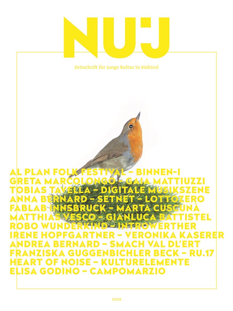 NUJ wurde vor vier Jahren von der deutschen Landeskulturabteilung ins Leben gerufen, um der jungen, freien Kultur und dem nicht institutionalisierten Kulturschaffen Südtirols Sichtbarkeit zu verleihen und den künstlerischen Nachwuchs des Landes stärker ins Licht zu rücken. In jeder Ausgabe wird auch mit interessanten Beispielen auf das Kulturgeschehen der Euregio und anderer Nachbarregionen geblickt.