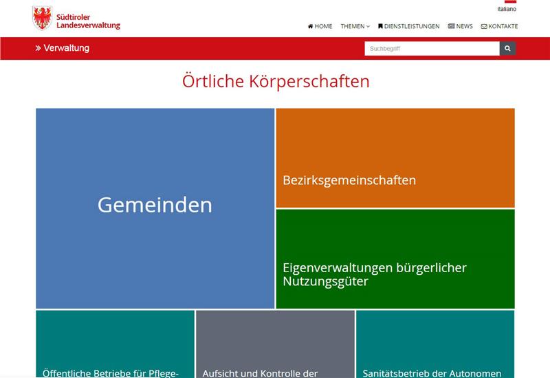 www.provinz.bz.it/verwaltung/oertliche-koerperschaften ist die Adresse der neuen Webseite der örtlichen Körperschaften. Laut Autonomiestatut obliegt der Landesregierung die Aufsicht über die Gemeinden, Bezirksgemeinschaften und alle anderen örtlichen Körperschaften. Vorgesehen ist auch deren Beratung durch die zuständige Abteilung. Das neue Webportal bietet einen Gesamtüberblick über diese Tätigkeit und stellt auch wichtige Themen wie die Finanzierung der Gemeinden, die Gemeindeimmobiliensteuer (GIS), die Rechnungsrevisoren, Gemeindesekretäre und andere örtliche Körperschaften, wie etwa die Eigenverwaltungen, in den Fokus. Formulare und Rundschreiben sind ebenso abrufbar wie Rechtsgutachten.