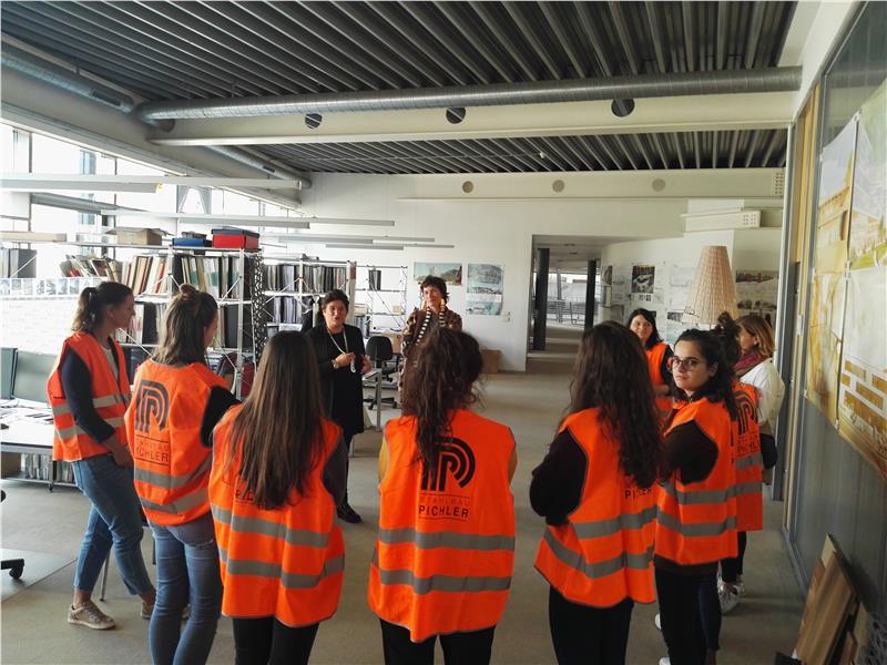Der Besuch des Unternehmenssitzes von Stahlbau Pichler ist eines mehrerer Angebote der Initiative "MINT-Girls und Technik", mit denen das Landesamt für Ausbildungs- und Berufsberatung den Schülerinnen der fünften Oberschulklassen Einblick in technische und naturwissenschaftliche Berufe eröffnen möchte. So hatte in den Wochen zuvor eine Mädchengruppe das "BITZ unibz fablab" besucht, die Werkstätte für kooperative Projektarbeit der Universität Bozen.