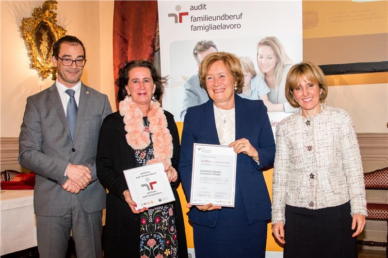 Im laufenden Jahr haben wiederum mehrere Südtiroler Arbeitgeber das Auditverfahren erfolgreich durchlaufen, wofür sie heute ein entsprechendes Zertifikat erhielten. Erstmals auditiert wurden folgende Betriebe: Additiv aus Lana, die Gemeinden von Brixen, Klausen und Sterzing, Hoku aus Toblach, Hotel Preidlhof aus Naturns, Hotel Lodenwirt aus Vintl, Jugenddienst Meran, Kolpinghaus Meran, Lignum Haus aus Ulten, Naturafit aus Lana, Orgelbau Kaufmann aus Deutschnofen, Pröslerhof aus Völs, Tischlerei Schwienbacher aus Schlanders und Wide Group aus Bozen.