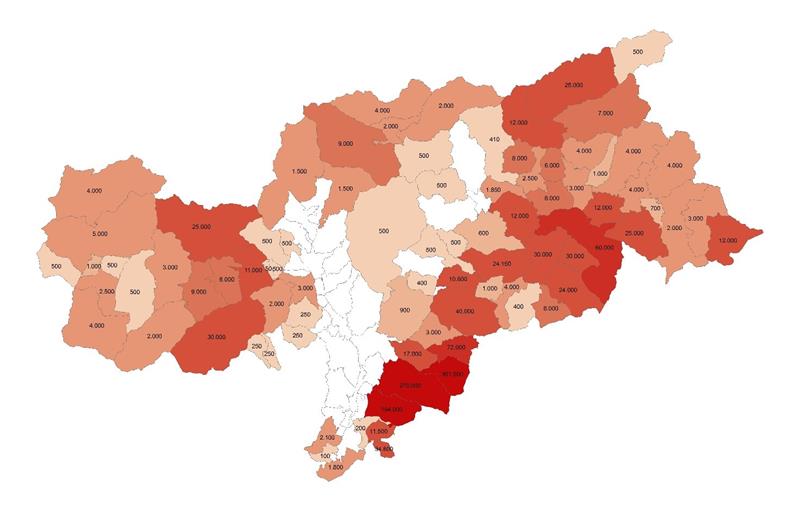 Die Schätzung der bei den Unwettern angefallenen Schadholzmengen wurde von den Forstinspektoraten erarbeitet, berichtet der Direktor der Abteilung Forstwirtschaft Mario Broll: In ganz Südtirol wird eine Sturmholzmenge von rund 1,5 Millionen Vorratsfestmetern (Vfm) geschätzt, wobei sich rund zwei Drittel auf sechs Gemeinden verteilen: In Welschnofen sind es 361.000 Vorratsfestmeter, in Deutschnofen 270.000, in Aldein 194.000, in Tiers 72.000, in Enneberg 60.000 und in Kastelruth 40.000 Vorratsfestmeter.