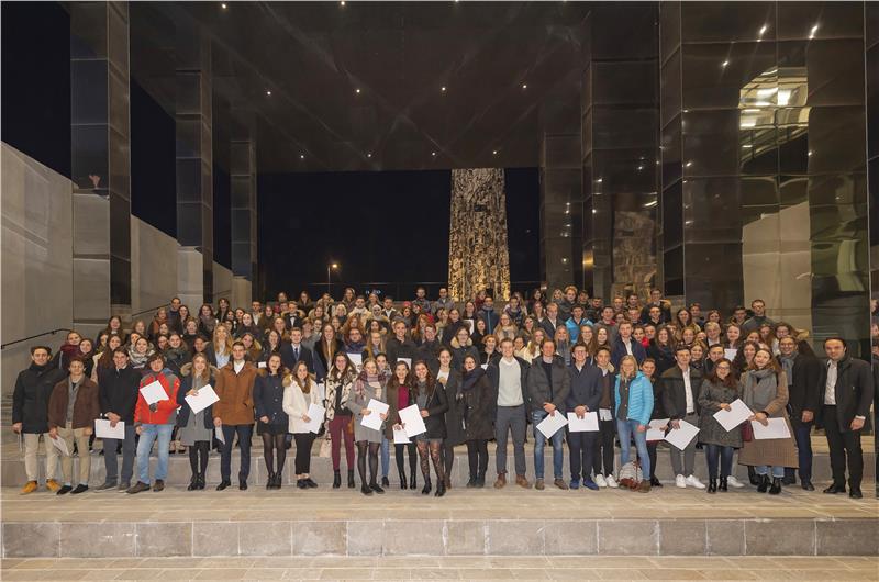 Insgesamt 199 Schülerinnen und Schüler waren zur heutigen Feier eingeladen, davon 169 Maturanten mit höchster Punktezahl 100/100, darunter 19 mit Auszeichnung, sowie 30 Berufs- und Fachschulabsolventen mit Bestnote 10/10, 13 davon mit Auszeichnung. An der Feier selbst nahmen rund 150 Schulabgänger mit Bestnote teil.