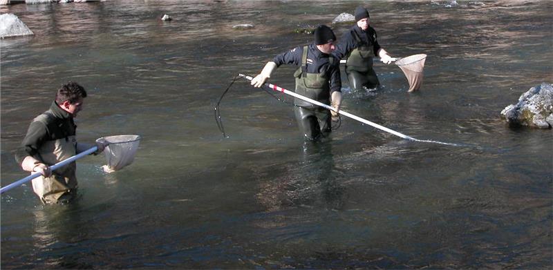 Die Erhebungen erfolgten mittels tragbarem Elektrofischfanggerät an ausgewählten strukturreichen Abschnitten auf einer Länge zwischen 20 und 80 Metern. "Bei kleineren Gewässern wurde versucht, die gesamte Gewässerfläche zu befischen, in größeren Gewässern haben wir uns speziell auf die strukturreichen Uferbereiche konzentriert", erklären die Mitarbeiter Hannes Grund und Andreas Meraner. Elektrofischen ermöglicht es, Fischbestände schnell und schonend zu erfassen. Dabei wird mit Hilfe eines Elektrofanggerätes Gleichstrom oder Impulsstrom durch das Wasser geleitet, die im Stromkreis befindlichen Fische schwimmen zur Anode, wo sie mit Keschern aufgefangen, gezählt und klassifiziert werden können.