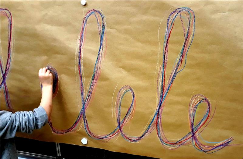 In einigen Klassen haben in dieser Schulwoche mehrere Schreibangebote stattgefunden. Die Schülerinnen und Schüler übten dabei das Linien Nachfahren, malten mit Zuckerkreide, schrieben den eigenen Namen mehrmals in unterschiedlichen Schriften, schraffierten Münzen, schrieben auf Noppenfolie oder im Pausenhof mit Straßenkreiden, verglichen die Handschriften Erwachsener und vieles andere mehr. "Dabei zeigten die Kinder große Begeisterung", so Eisenstecken.