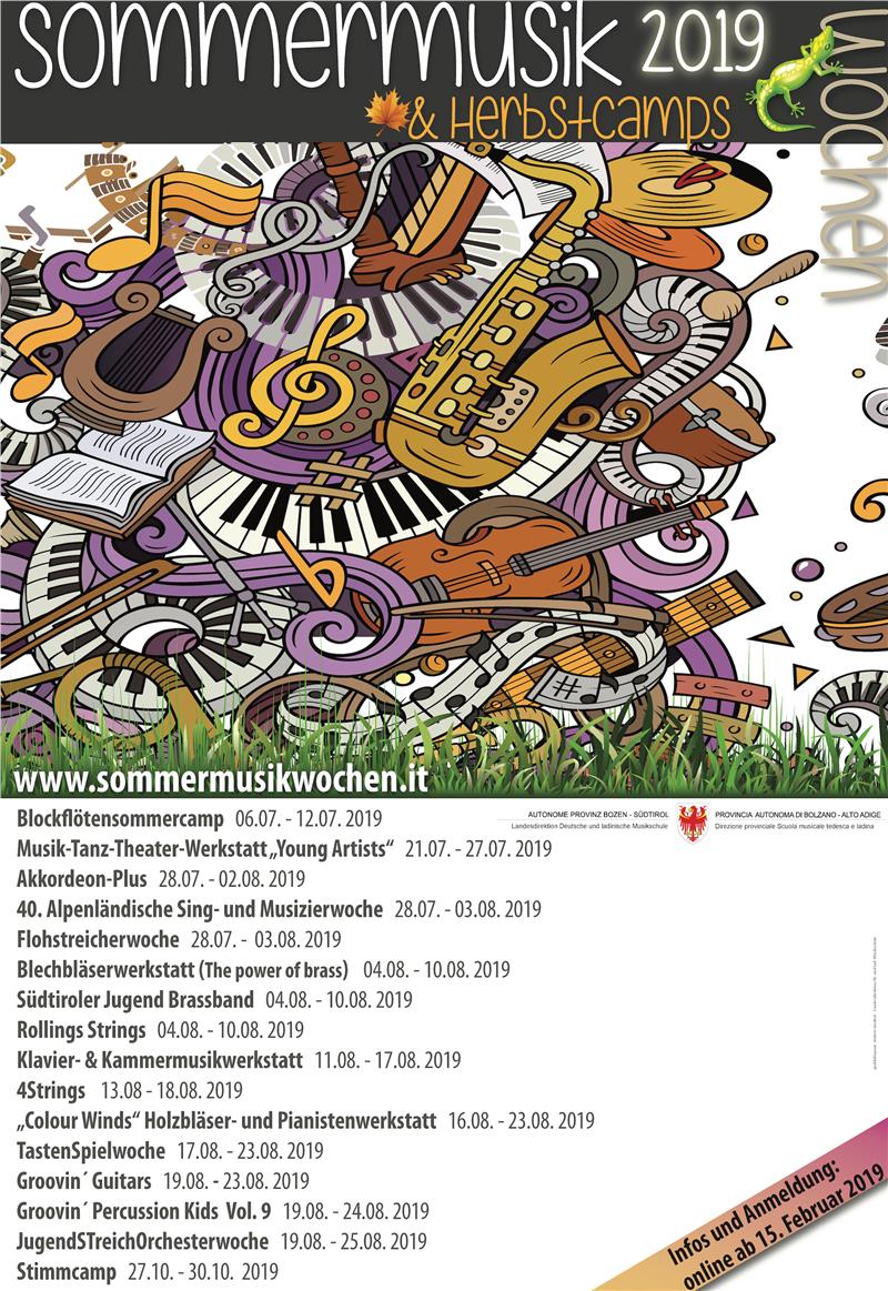 Kurzweilige Tage mit Musik, Schauspiel und Tanz können Interessierte auch in diesem Sommer wieder erleben: Bei den Sommermusikwochen reicht das Angebot von der Alpenländischen Sing- und Musizierwoche bis zur Blechbläserwerkstatt, vom Musik-Tanz-Theater bis zum Stimmcamp. Das Angebot richtet sich vor allem an junge Musikerinnen und Musiker. Die Online-Anmeldungen starten am 15. Februar 2019.