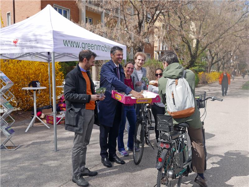 Zum Auftakt der Aktion wurden Radfahrer heute (19. März) am Radweg an der Talfer in Bozen über den Wettbewerb informiert. Auch Mobilitätslandesrat Daniel Alfreider kam vorbei, selbstverständlich mit dem Fahrrad. "Wir wollen die Menschen davon überzeugen, bei alltäglichen Wegen dem Fahrrad den Vorzug zu geben - das spart nicht nur Benzinkosten, sondern schont vor allem die Umwelt und nicht zuletzt kann man etwas für die eigene Gesundheit und Fitness tun", sagte Alfreider. Er erinnerte daran, dass die Radmobilität als alternative, umweltfreundliche Mobilitätsform ganz oben auf der Agenda der Landesregierung stehe, wenn es darum gehe, Südtirol zu einer so genannten "Green Region" zu machen. "Die Aktion 'Südtirol radelt' ist in diesem Zusammenhang eine der erfolgreichsten Sensibilisierungsmaßnahmen, und wir hoffen, dass auch heuer wieder viele Südtirolerinnen und Südtiroler mitmachen", so der Landesrat.