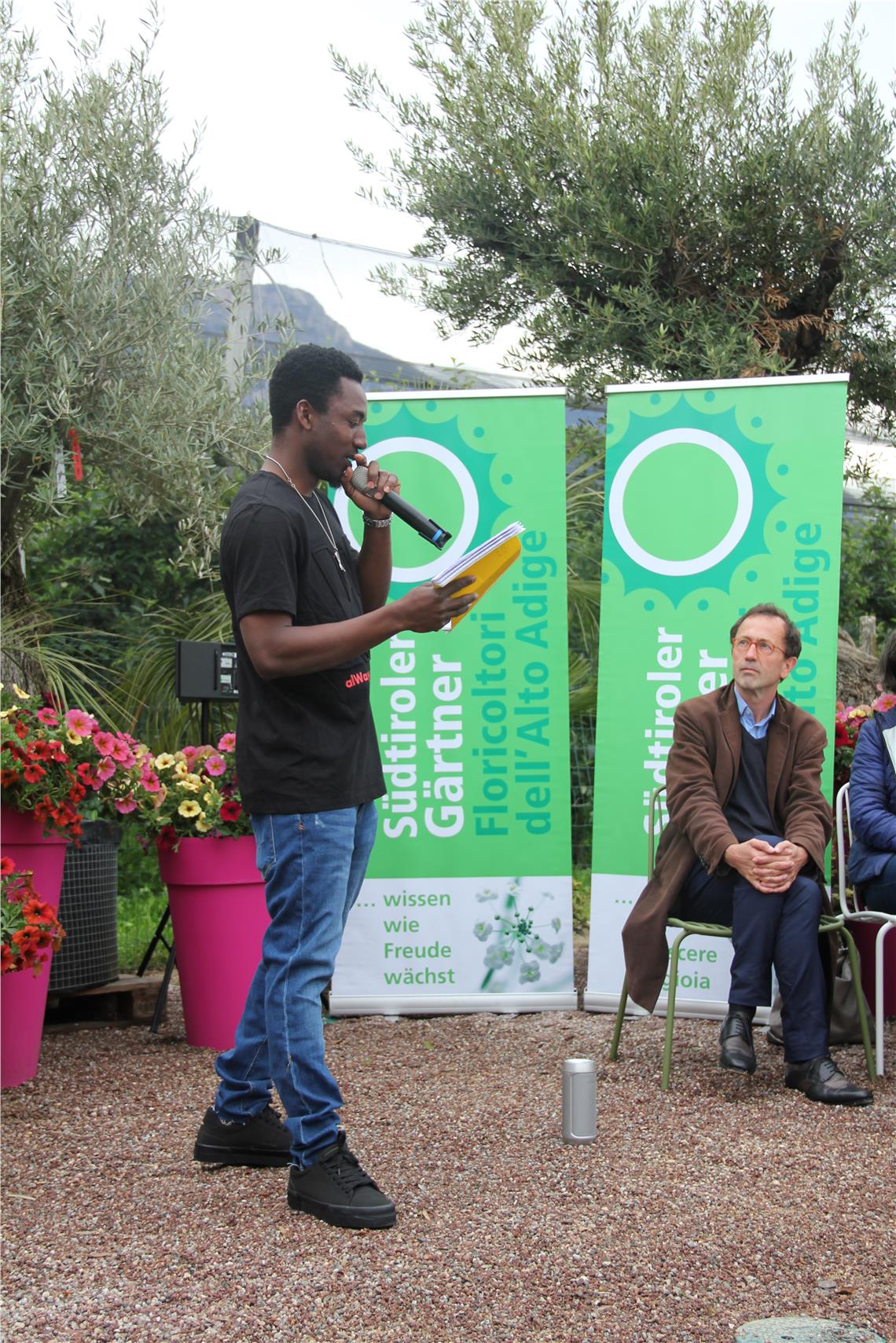Die Abschlussfeier begann mit einem RAP in deutscher Sprache, den Kursabsolvent Adebayo Yomi vortrug. Ressortdirektor Armin Gatterer, der die Zertifikate überreichte, zeigte sich beeindruckt von den enormen sprachlichen Fortschritten der einzelnen Kursteilnehmer: Joël Fotso aus Kamerun hat sich sogar zur Zweisprachigkeitsprüfung angemeldet. Der Obmann der Südtiroler Gärtnervereinigung, Valtl Raffeiner, begrüßte das Zusammenwirken und die gegenseitige Befruchtung von Wirtschaft und öffentlicher Hand. Gärtnereiinhaberin Kathrin Reider erzählte von den positiven Erfahrungen bei der Begleitung des Praktikanten. Sie sprach von einem Gewinn für beide Seiten. Ein gegenseitiges Aufeinanderzugehen sei jedoch Voraussetzung dafür.