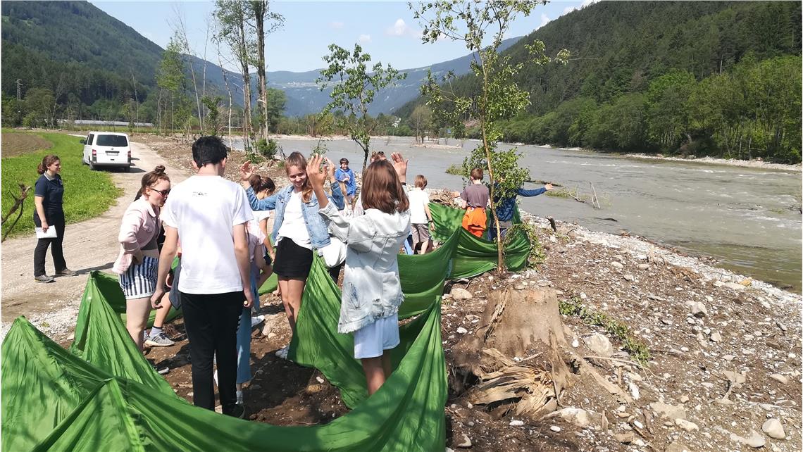 Mitarbeiterinnen und Mitarbeiter des Bereichs Wildbachverbauung in der Agentur für Bevölkerungsschutz zeigten die Entwicklungen der Ilsterner Au anhand von Fotos auf und erklärten mit einem Lernspiel die Vorteile naturnaher Flussläufe für Umweltschutz und Hochwasserschutz. Zudem wurde dargestellt, wie durch Geländemodellierung die Voraussetzung für einen vitalen Auwald mit Feuchtflächen geschaffen wurde. Bis sich der Auwald-typische Lebensraum voll entwickelt, braucht es noch Zeit. Die Schülerinnen und Schüler leisteten Starthilfe, indem sie gemeinsam mit dem Forstinspektorat Bruneck und der Forststation Kiens Auwald-Gehölze pflanzten.