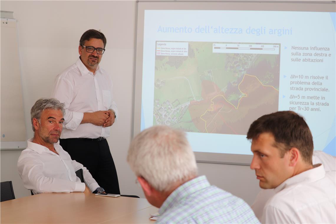 An der gestrigen Aussprache mit Bevölkerungsschutzlandesrat Arnold Schuler und Tiefbau- und Mobilitätslandesrat Daniel Alfreider nahmen neben dem Bürgermeister der Gemeinde Prettau auch Vizebürgermeister Oswald Kottersteger und die Mitglieder der Lawinenkommission teil.