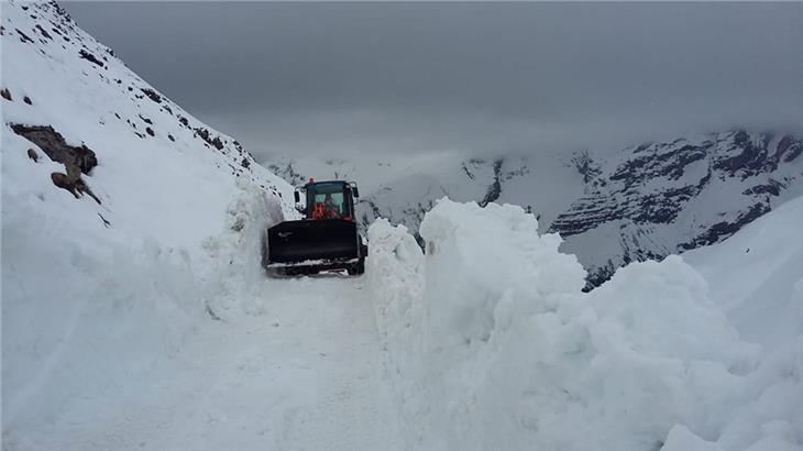 Mit Schneeräumungsarbeiten waren die Mitarbeiter des Straßendienstes Vinschgau in den vergangenen Tagen noch auf dem zu den höchstgelegenen Passstraßen der Alpen zählenden Verkehtrsrswegrsweg auf das Stilfser Joch im Einsatz. Zudem musste ein Abschnitt der Straße oberhalb von Trafoi von Erdmassen und Gestein gesäubert werden, nachdem der Bach über die Ufer getreten war und die Straße komplett verlegt war.