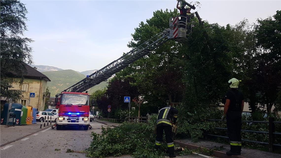Die Männer der Berufsfeuerwehr in Bozen wurden gestern Abend zu 17 kleineren, unwetterbedingten Überschwemmungen und zu Ereignissen mit abgebrochenen Ästen gerufen.