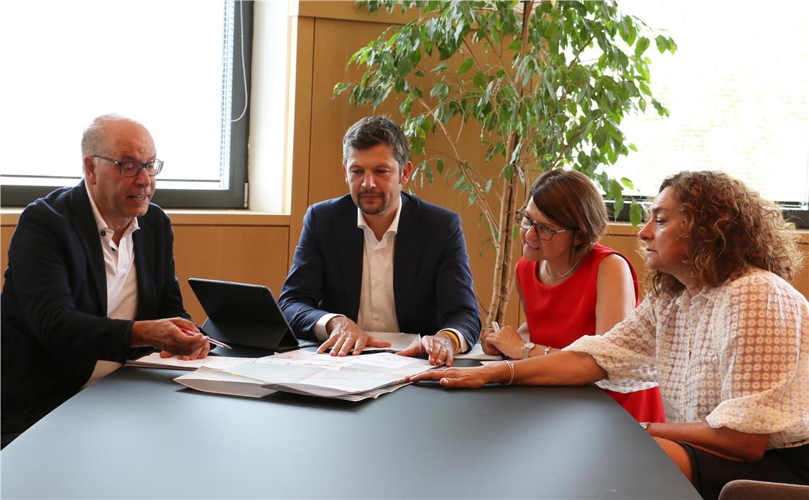 Land und Gemeinde wollen zusammen die Verkehrslage in Branzoll verbessern, so Alfreider und die Gemeindevertretung bei einem Treffen. Für die Umfahrung wird eine Sonderfinanzierung ins Auge gefasst.
