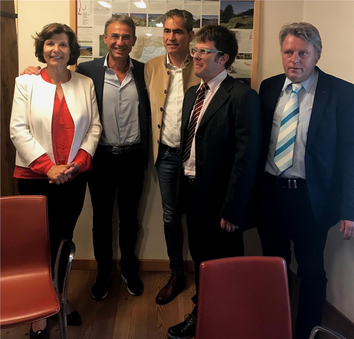 Landesrätin Maria Hochgruber Kuenzer traf heute (26. Juli) in Bormio Umweltminister Sergio Costa und alle Vertreter, die im staatlichen Nationalpark-Komitee vertreten sind: Ugo Parolo (Lombardei), Mario Tonina (Trient), Guerino Benaglio (Lombardei), Angelo Dalpez (Trient), Isidoro Furlan Ministerium), Angelo Schena (Vertreter der Umweltverbände), Romano Stanchina (Trient).