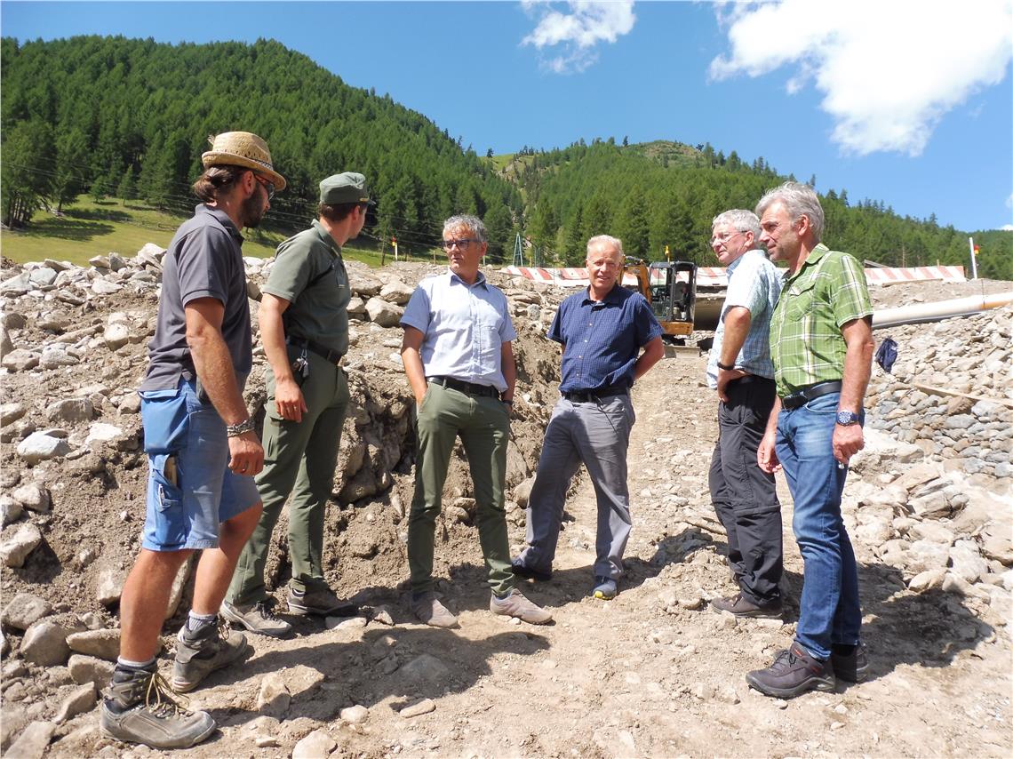 Bevölkerungsschutzlandesrat Schuler und Agenturdirektor Pollinger haben heute (1. August) mit Gemeindevertretern Baustellen der Wildbachverbauung im Vinschgau besichtigt.