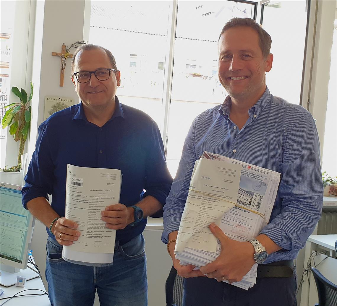 Am 29. Juli wurde sie ausgestellt, heute, 1. August, hat Hochbaulandesrat Massimo Bessone sie persönlich in der Gemeinde Bozen abgeholt: Die Baukonzession für das Projekt des Bibliotheken- und Medienzentrums in der ehemaligen Pascoli-Schule in Bozen, in dem die Landsbibliotheken "Teßmann" und "Claudia Augusta" sowie die Bozner Stadtbibliothek unter ein Dach kommen. Damit ist laut Bessone ein weiterer formaler Schritt gesetzt, um das Bibliothekenzentrum zu verwirklichen. „Innerhalb Herbst 2019 wollen wir das Einreichprojekt für dieses wichtige Vorhaben für die Stadt Bozen und das ganze Land vorbereiten und genehmigen", betont Bessone.