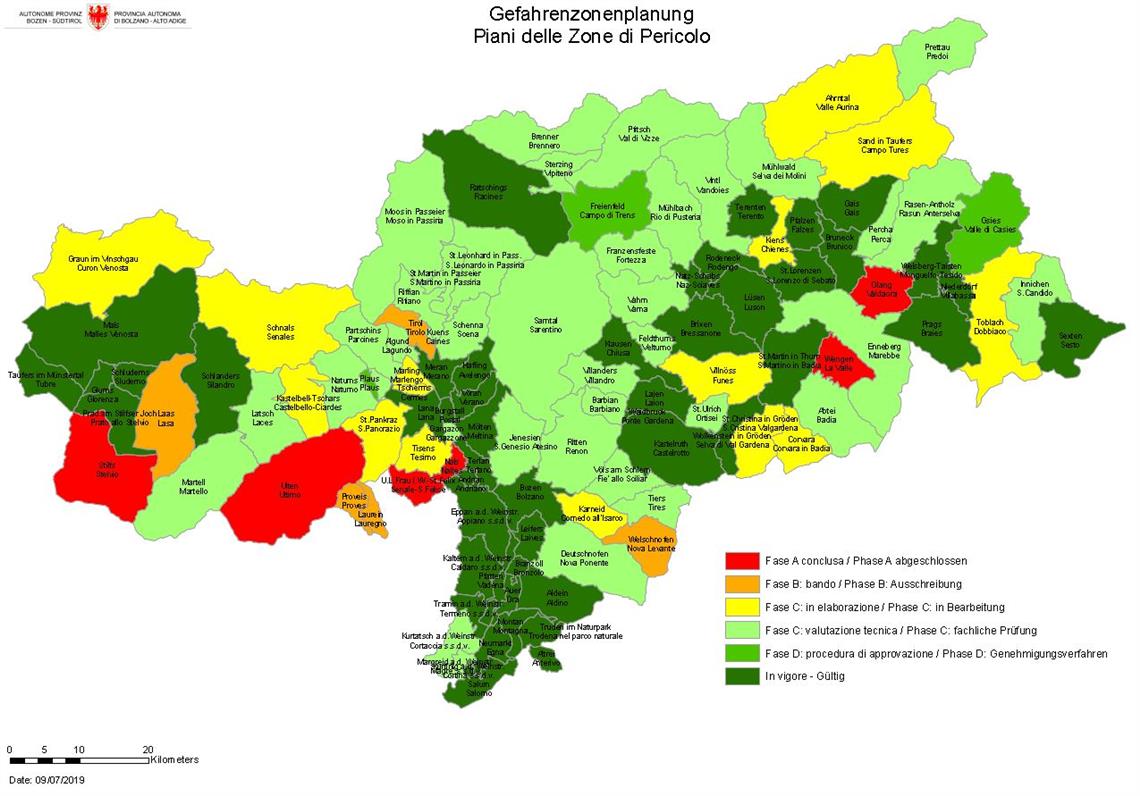 Im neuen, im Jahr 2018 verabschiedeten Landesgesetz für "Raum und Landschaft" (Nr. 9) regeln die Art. 55 und 56 den Bereich der Gefahrenzonenpläne. Das Anliegen, betont die Landesrätin, bleibe dasselbe: "Oberstes Gebot ist die Vorsorge für den Schutz der besiedelten Gebiete vor Naturgewalten." Dies sei heute für eine breite Öffentlichkeit nachvollziehbarer denn je, besonders infolge der Schäden, die Naturereignisse auch in Südtirol angerichtet haben.