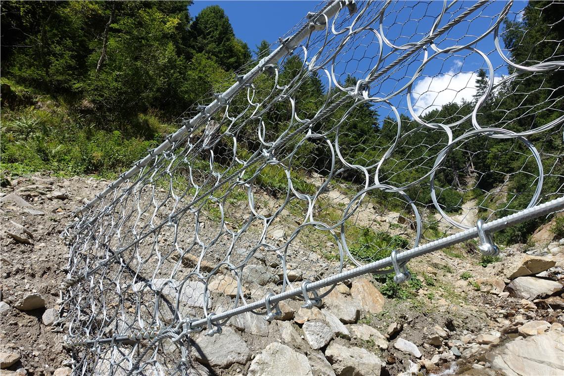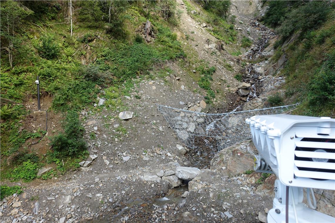 Das Landesamt für Wildbach- und Lawinenverbauung West hat im Töllgraben zwischen Algund und Partschins eine Netzsperre gebaut. Das ist eine Sperre, die aus Stahlseilen und Netzen errichtet und mittels Seilanker im Bachbett verankert wird. Die Sperre ist rund vier Meter hoch und zwischen sechs und zwölf Meter breit, berichtet Bauleiter Roland Schweitzer vom Amt für Wildbach- und Lawinenverbauung West in der Agentur für Bevölkerungsschutz. Dabei handelt es sich um einen innovativen Bautyp, der vom Unternehmen Maccaferri für den selektiven Rückhalt von Geröll konzipiert ist.