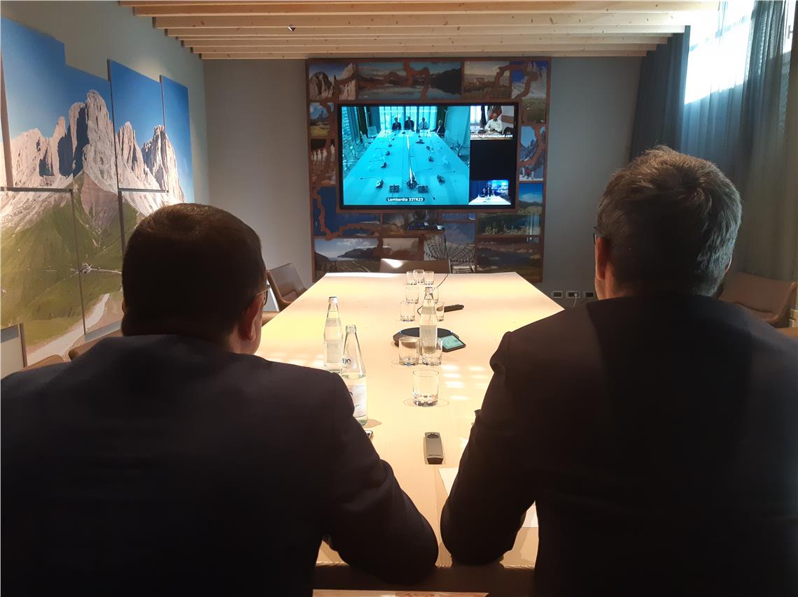 Bei der heutigen Vdeokonferenz standen die Landeshauptleute Kompatscher und Fugatti in Verbindung mit dem Präsidenten der Lombardei, Attilio Fontana, dem Präsidenten des Coni, Giovanni Malagò, dem Bürgermeister von Mailand, Giuseppe Sala, und dem Präsidenten der Region Venetien, Luca Zaia. Telefonisch war der Bürgermeister von Cortina d'Ampezzo, Gianpietro Ghedina, zugeschaltet.
