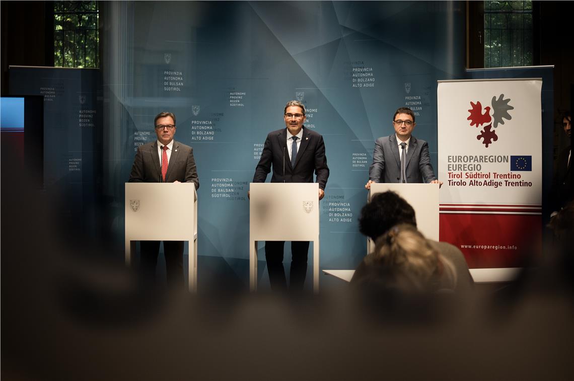 In der Pressekonferenz nach der Sitzung gingen die drei Landeshauptleute Arno Kompatscher, Günther Platter und Maurizio Fugatti zunächst auf den Zusammenhalt der Europaregion ein – gerade auch in Krisenzeiten. Südtirols Landeshauptmann Kompatscher blickte als noch amtierender Euregio-Präsident auf die Europäische Union: "Viele Jahrzehnte ging alles gut. Seit der Finanz- und Migrationskrise steht sie aber wie ein Schönwetterprojekt da." Während die EU streite, halte die Europaregion zusammen: "Auch bei schwierigen und teils unterschiedlichen Interessenslagen haben wir Kompromisse gefunden und gemeinsame Positionen nach außen vertreten!"