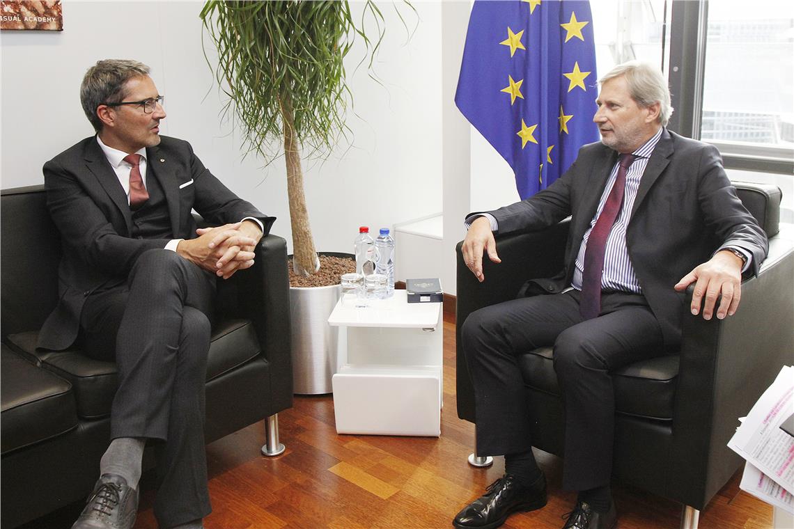 Mit Hahn erörterte Kompatscher die Szenarien nach dem wahrscheinlichen Brexit. Trotz drohenden Ausfalls des EU-Nettozahlers Großbritannien halten Hahn und Kompatscher einen gut ausgestatteten EU-Haushalt für wichtig. "Auf die globalen Aufgaben brauchen wir gemeinsame, europäische Antworten", sagte Kompatscher. Hahn rechnete vor, dass die EU-Verwaltung nur einen "sehr kleinen Teil" der Gesamtausgaben der Mitgliedsstaaten ausmacht: "Laut ersten Berechnungen gibt die EU pro Bürger täglich rund einen Euro-Cent aus, also 3,65 Euro pro Jahr. Aber die nationalen Interessen sind groß und Verhandlungen auch über kleine Aufstockungen äußerst schwierig."