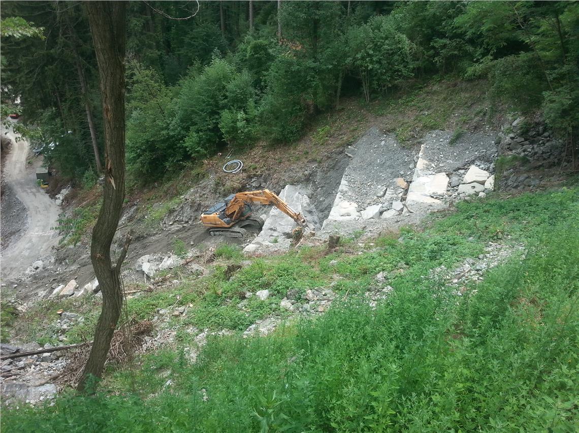 Die Hangsicherungsarbeiten durch Errichtung von Sperren aus Zyklopensteinen und Beton stehen nun kurz vor dem Abschluss, berichtet Bauleiter Andreas Vettori. Für die Durchführung der Arbeiten musste eine Zufahrtsstraße angelegt werden. Der Transport der ersten Steine war aufwändig, weil er in steilem Gelände erfolgte. Derzeit wird die Angleichung des Materials ausgeführt.