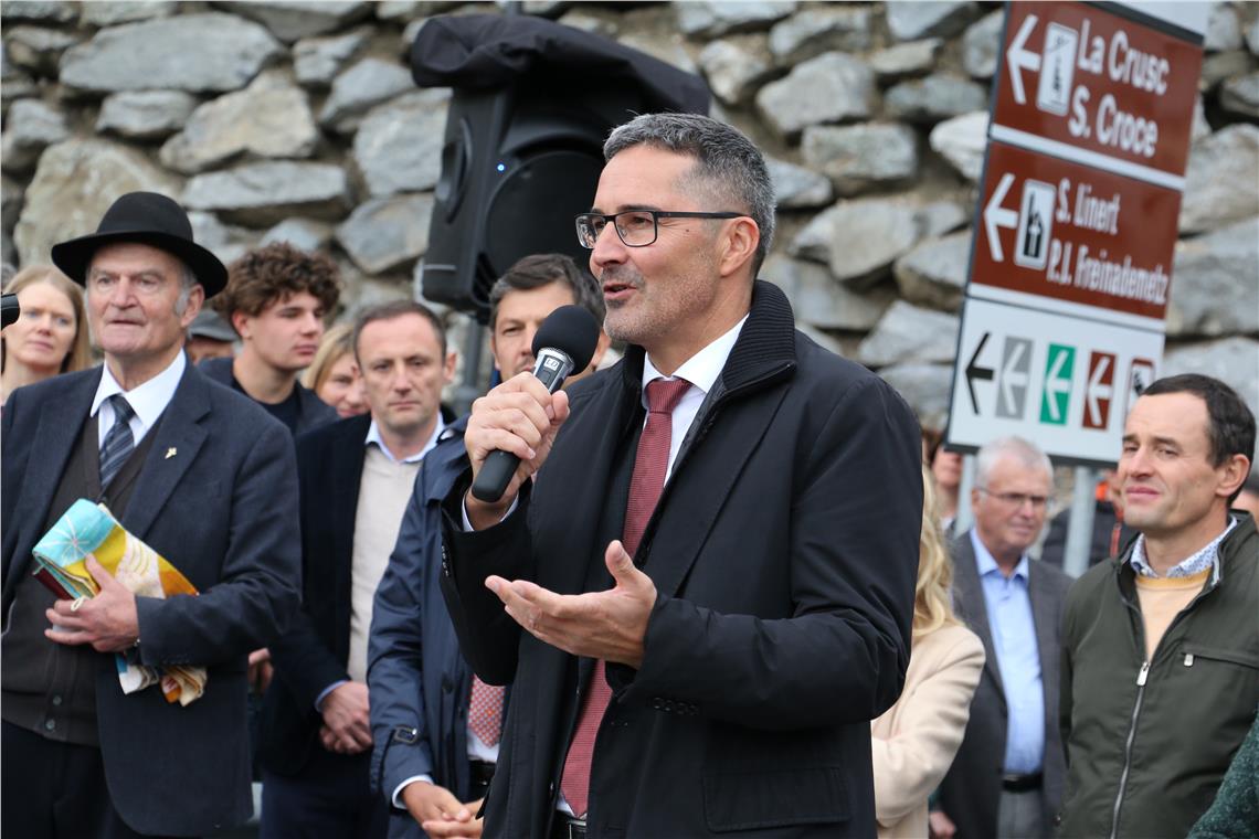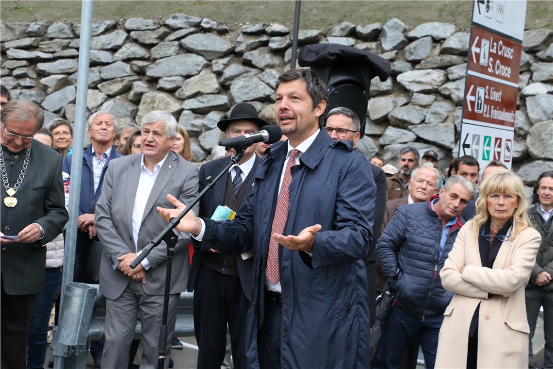 "Zuerst war es ein Traum und nun ist der Traum wahr geworden", verlieh Bürgermeister Frenademetz seiner Freude über die neue Brücke Ausdruck. Er lobte die gute Zusammenarbeit zwischen Land und Gemeinde und dankte ebenso wie Kompatscher und Alfreider allen am Brückenbau Beteiligten. An manchen Tagen sei sogar bei 15 Minusgraden an der Brücke gearbeitet worden, so der Bürgermeister.