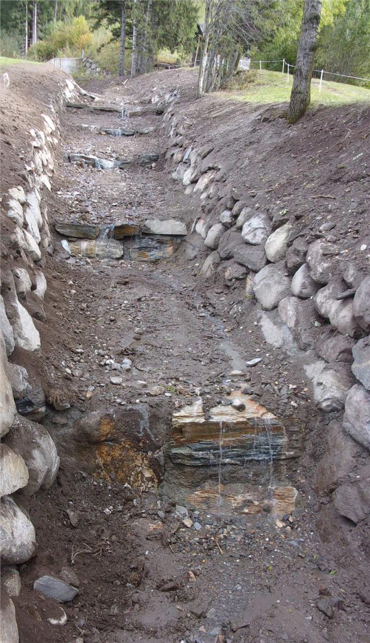 Der Bach, auch Unterriederbach genannt, war in den vergangenen Jahren öfters über die Ufer getreten und hatte an Gebäuden Schäden angerichtet. Im mittleren Bachabschnitt haben die Arbeiter um Vorarbeiter Roland Langgartner nach einem Projekt von Philipp Walder vom Landesamt für Wildbach- und Lawinenverbauung Nord in der Agentur für Bevölkerungsschutz acht Sperren mit Uferschutzmauern errichtet. Diese Arbeiten haben im September begonnen und wurden jetzt abgeschlossen.