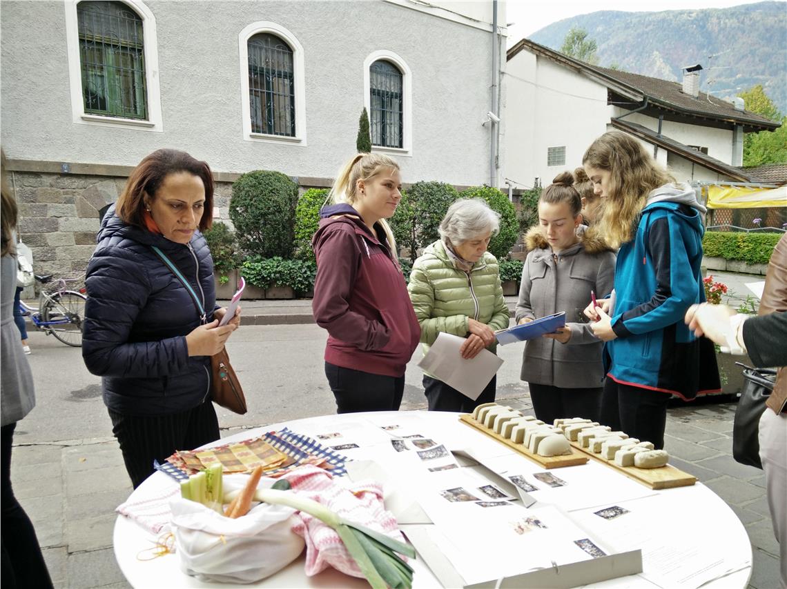 Mit ihren Initiativen zur Verringerung und Vermeidung von Müll unter dem Moto "Der beste Müll ist der, der nicht entsteht" haben sich die Schülerinnen vor kurzem auch an einem Stand vor dem Meraner Frauenmuseum präsentiert. Dabei wurden auch die bereits erprobten Tipps zur Müllvermeidung weitergegeben.