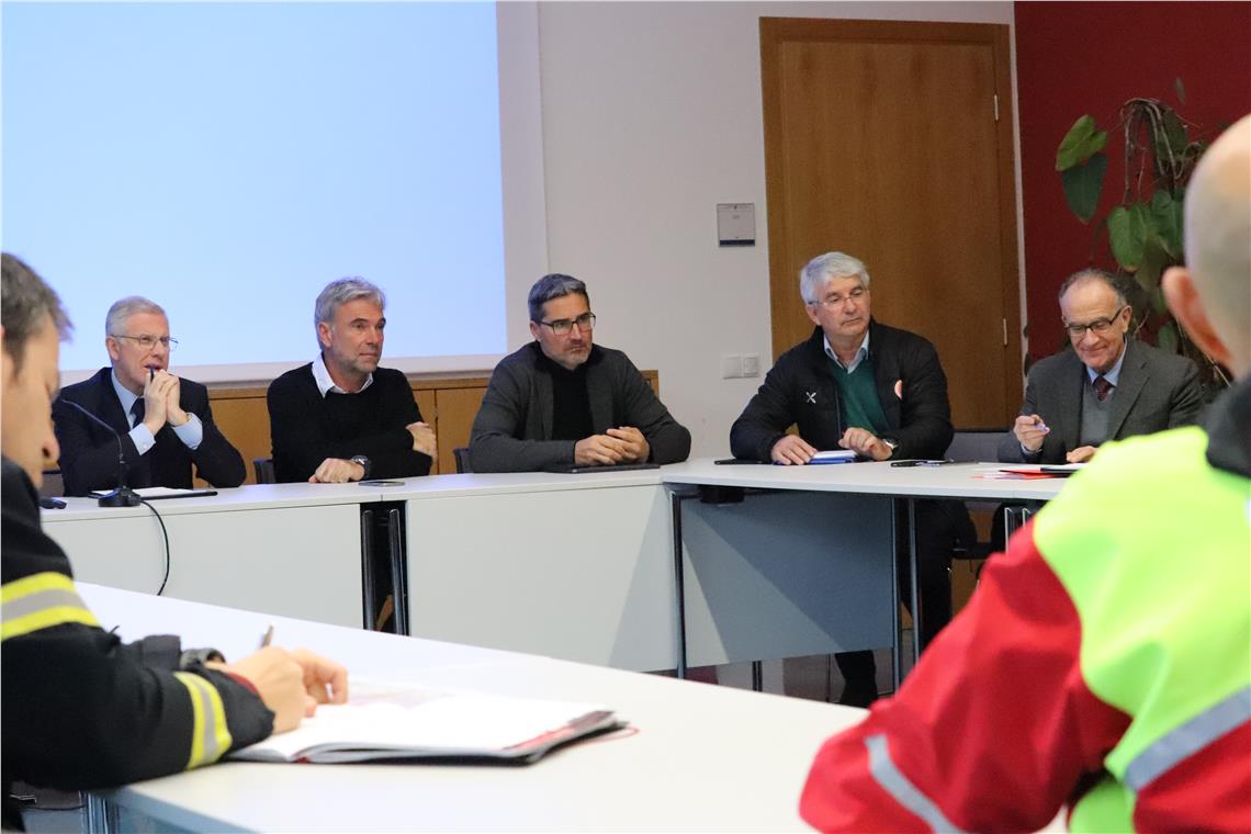 Die Landesleitstelle mit Landesrat Schuler, Landeshauptmann Kompatscher und Regierungskommissär Cusumano hat heute (17. November) in der Agentur für Bevölkerungsschutz getagt.