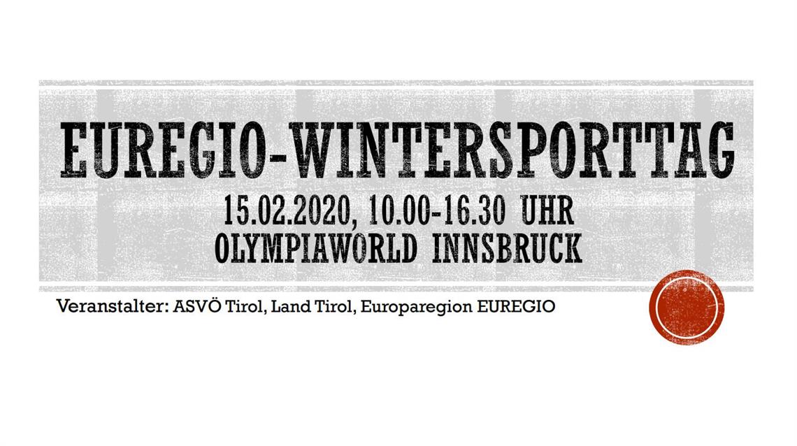 Die Europaregion Tirol- Südtirol-Trentino organisiert gemeinsam mit dem Allgemeinen Sportverband Österreichser ASVÖ am 15. Februar 2020 erstmals den Euregio-Wintersporttag. Er findet in der Olympiaworld Innsbruck von 10 bis 16.30 Uhr statt.
