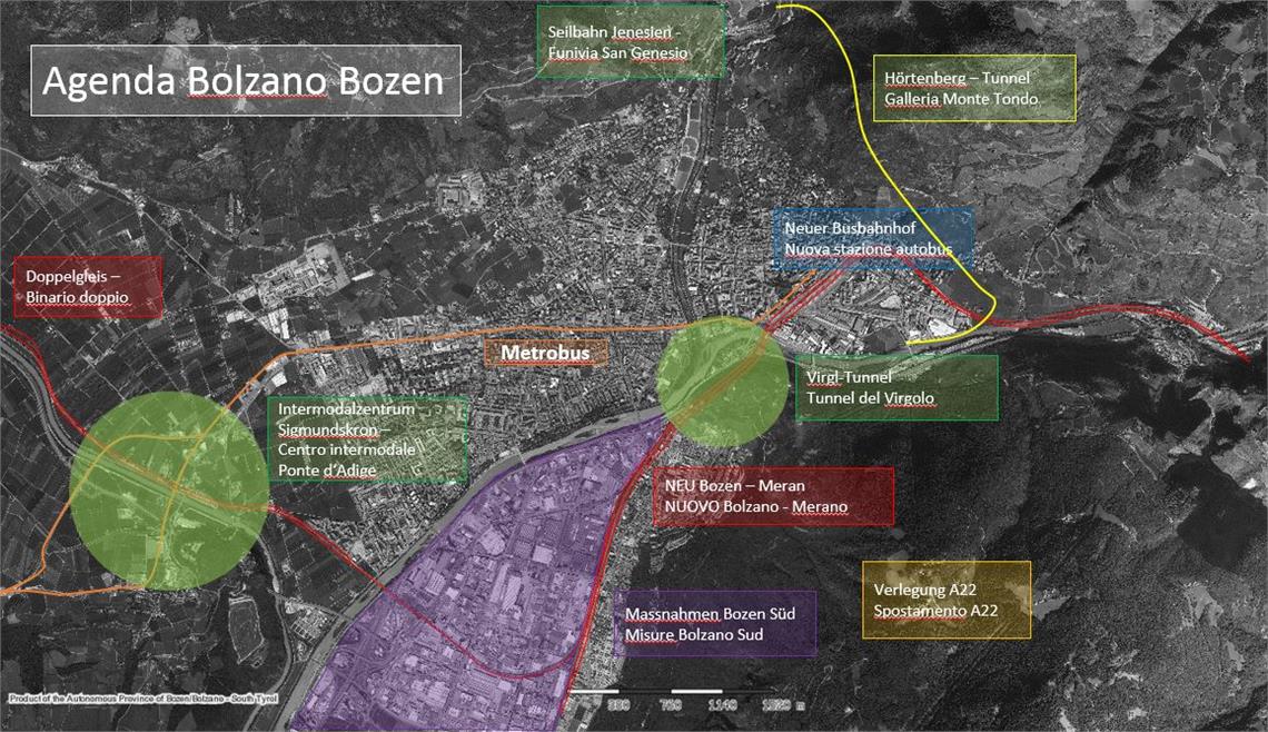 Alle anderen in der Agenda Bozen enthaltenen Vorhaben wird das Land laut Kompatscher wie vereinbart weiterverfolgen und unterstützen. Als Beispiele nannte er die Unterführung in der Romstraße, die Verbesserung der Einsteinstraße, die Potenzierung des Metrobusses, die zunehmende Nutzung von Bussen mit sauberem Antrieb oder den Ausbau der Radwege; alles Maßnahmen, die bereits im Laufen sind. Der Landeshauptmann verwies aber auch auf noch anzugehende Vorhaben wie den Umfahrungstunnel unter dem Hörtenberg, für den es in Kürze die Machbarkeitsstudie geben werde. Weitere Infrastrukturvorhaben wie der Virgl-Bahntunnel, der Ausbau der Bahnlinie Meran-Bozen und der neue Mobilitätsknotenpunkt in Sigmundskron werden laut Kompatscher längerfristig für Entlastung sorgen.