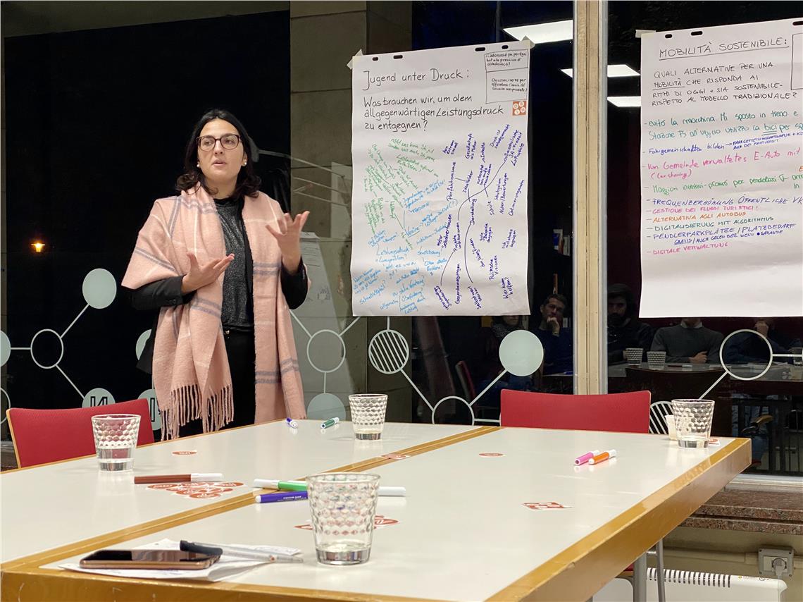 Einmal im Jahr treffen sich die Landesjugendbeiräte aller drei Sprachgruppen mit dem Ziel, gemeinsame Anliegen der Jugendlichen auszumachen. Am Samstag (30. November) war es wieder soweit. Im neuen Co-Working-Space "Drin" in Bozen diskutierten, evaluierten und arbeiteten die Jugendlichen konkrete Vorschläge aus. Es geht dabei darum, wie Umweltbewusstsein und Nachhaltigkeit gefördert und wie junge Menschen darin unterstützt werden können, sich in einer leistungsorientierten Gesellschaft zurechtzufinden, in der der Leistungsdruck immer größer wird.
