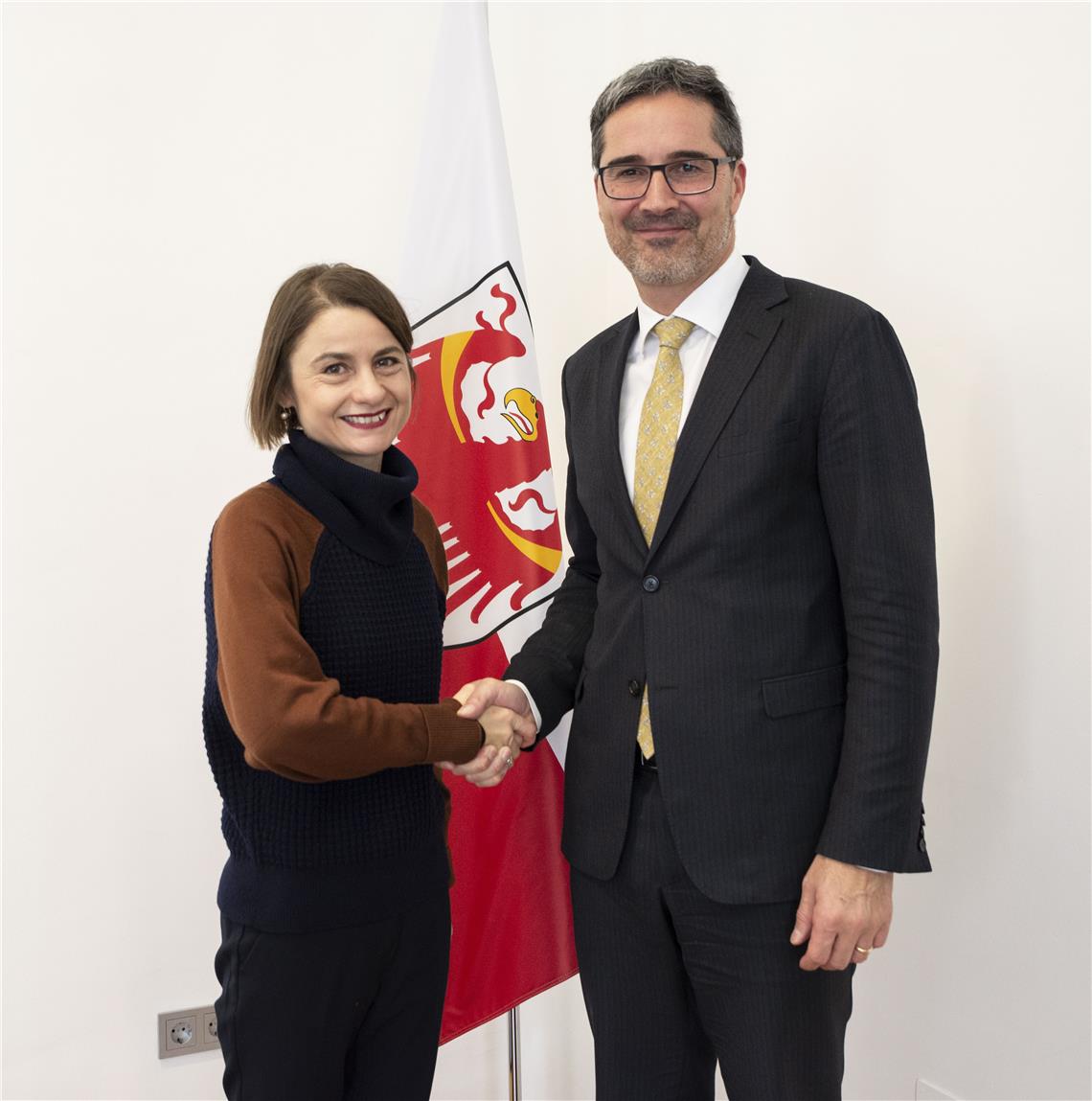 Sabrina Dallafior steht seit dem 1. August dieses Jahres dem schweizerischen Generalkonsulat in Mailand vor, in dessen Zuständigkeitsbereich auch Südtirol fällt. Am heutigen Donnerstag (5. Dezember) hat die Generalkonsulin Südtirols Landeshauptmann Arno Kompatscher im Palais Widmann in Bozen besucht.
