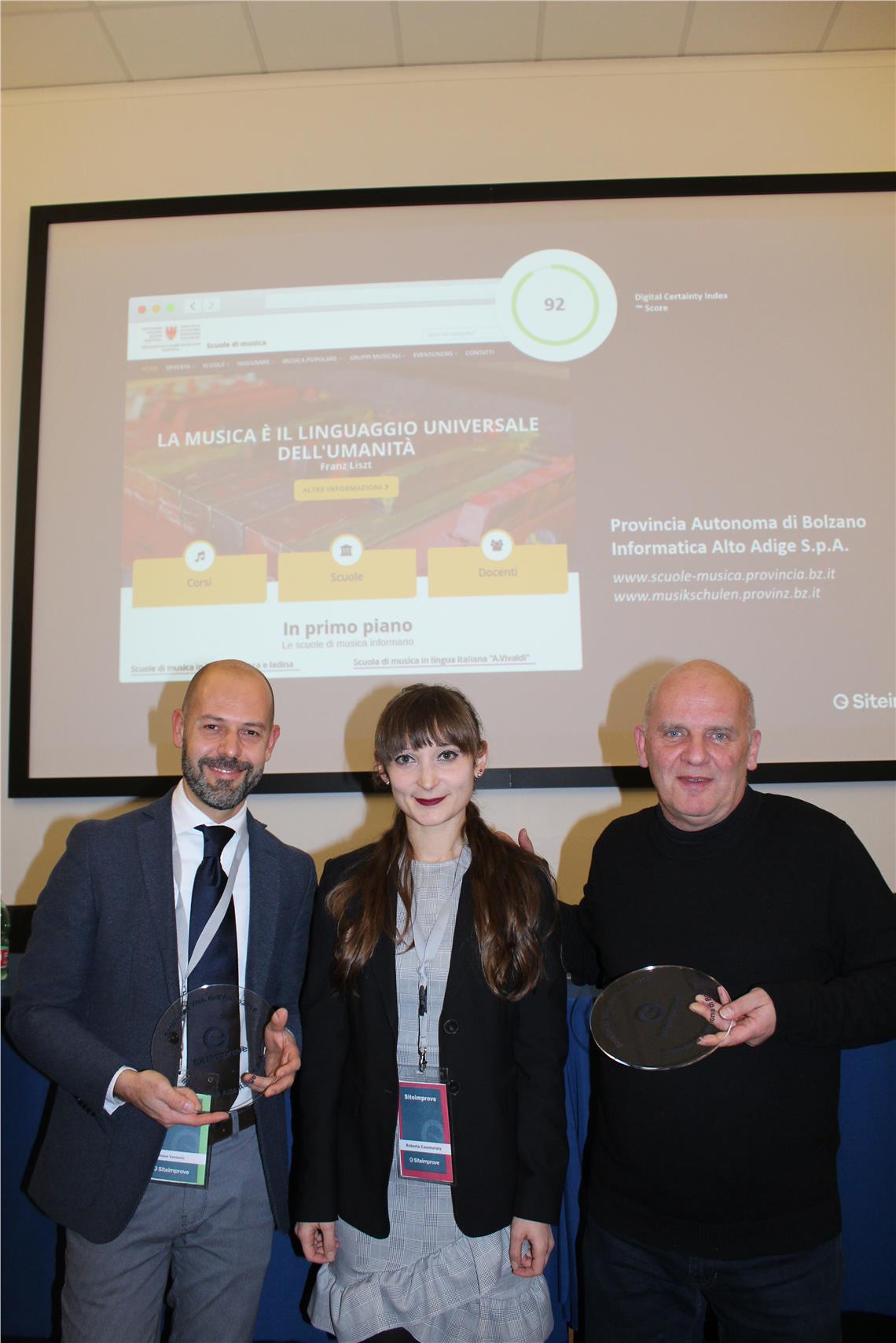 Simone Venturin, Projektverantwortlicher der SIAG, und Hubert Niederst von der deutsch- und ladinischsprachigen Musikschuldirektionhaben haben den ersten Preis kürzlich in Mailand entgegengenommen. Die beiden "freuen sich riesig darüber, dass unser Bestreben, den Webauftritt ständig zu optimieren, nun Früchte zeigt." Dank der engen Zusammenarbeit der Musikschulen sei es möglich gewesen, die Angebote zusammenzulegen und gemeinsam die Inhalte zu optimieren.