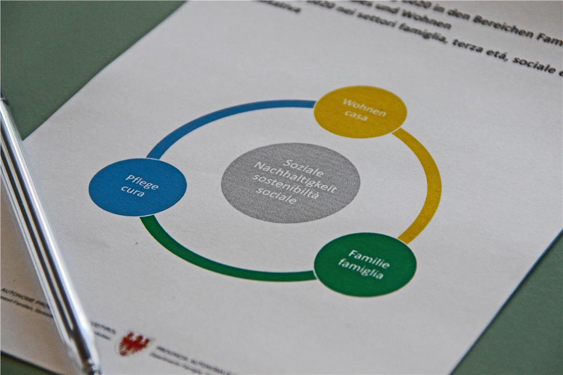 Über anstehende und laufende Projekte und Maßnahmen hat heute (27. Jänner) Landesrätin Waltraud Deeg informiert. Die Themen Pflege, Familie und Wohnen hätten zukunftsweisenden Charakter, vor allem in Hinblick auf die Megatrends demografischer Wandel und Digitalisierung. "Wir müssen Kurs und Ziel kennen, um die Herausforderungen zu meistern", ist sich Deeg - ein Jahr nachdem sie als Landesrätin die Bereiche Familie, Senioren, Soziales und Wohnbau übernommen habe - sicher. Das gemeinsame Ziel der Landesregierung sei es, die Weichen so zu stellen, dass es sich weiter gut in Südtirol leben lässt. Dabei könne die soziale Nachhaltigkeit als Überthema bezeichnet werden. Als Arbeitsschwerpunkt werde es die kommenden Jahre prägen.