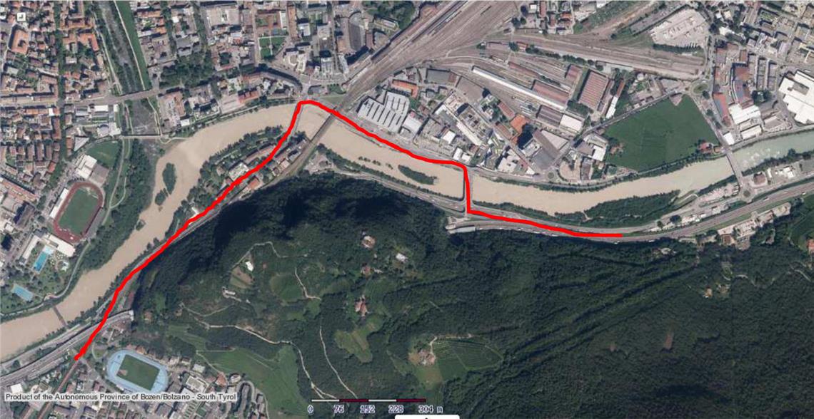 Während der Arbeiten ist es untersagt, sich am Eisack - einschließlich Uferbereich und Flussbett - im Bereich zwischen der Loretobrücke und der Kampillerbrücke aufzuhalten.