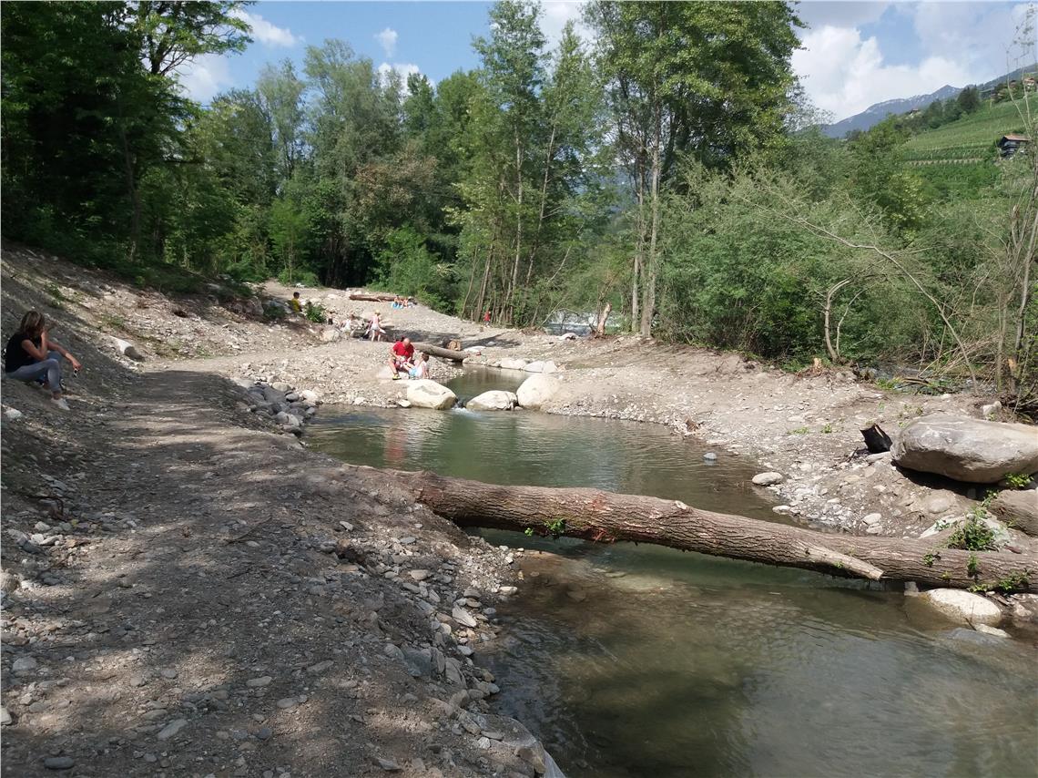 Das Landesamt für Wildbach- und Lawinenverbauung West hat in den vergangenen zwei Jahren auf der orographisch rechten Seite der Passer oberhalb der Lazag bei Meran eine Reihe von Maßnahmen verwirklicht, um die Funktionsfähigkeit der Überflutungsfläche aufzuwerten. So war unterhalb der Mündung des Finelebaches ein neuer Seitenarm mit mehreren teichähnlichen Strukturen angelegt worden. Dadurch wurde eine ungehinderte Fischwanderung vor allem für die Jungfische ermöglicht und gleichzeitig eine Naherholungszone geschaffen.