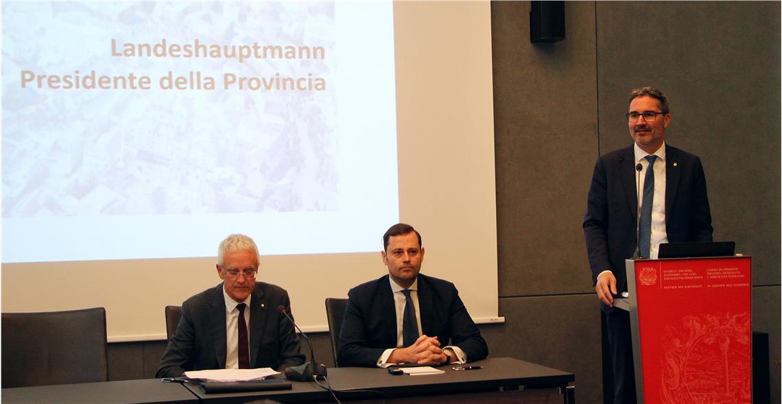Die Vorbereitungen für das umfassende Entwicklungsprojekt für das Bahnhofsareal in Bozen sind einen Schritt weiter. Am Sitz der Handelskammer in Bozen fand heute Vormittag (26. Februar) in Anwesenheit von Spitzenvertretern des Landes Südtirol, der Gemeinde Bozen, der Gesellschaft ARBO (Areal Bozen ABZ AG) und der italienischen Eisenbahngesellschaft die Roadshow, also die öffentliche Präsentation statt, mit der der sogenannte Markttest abgeschlossen wird.