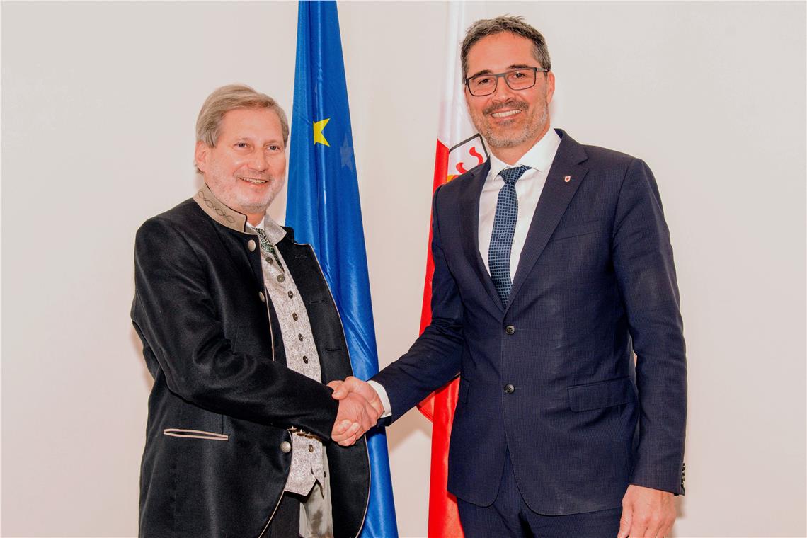 Der Österreicher Johannes Hahn ist seit 2010 Mitglied der Europäischen Kommission, in der aktuellen EU-Kommission unter Präsidentin Ursula von der Leyen ist Hahn zuständig für Haushalt und Verwaltung. Hahn nutzte seinen privaten Aufenthalt in Südtirol für ein ausführliches Gespräch mit Landeshauptmann Arno Kompatscher am Sitz der Landesregierung. Hahn und Kompatscher loteten dabei wichtige Möglichkeiten aus, die das Budget der Europäischen Union dem Land Südtirol bietet. Vom Trans-European Transport Network TEN-T über die Innovation und den ländlichen Raum bis hin zum Wasserstoff: Es gebe eine Menge Bereiche, in denen die EU Südtirol tatkräftig unterstützen könne, erklärte Landeshauptmann Kompatscher im Anschluss an das Treffen.
