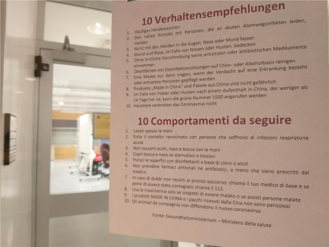 Zum bestätigten Fall des deutschen Touristen, der in Gröden Urlaub gemacht hat, teilt der Sanitätsbetrieb mit, dass die Umfeldanalysen gemacht wurden. Die anderen vier Gäste, die sich mit der deutschen Reisegruppe in der Unterkunft aufgehalten hatten, wurden gestern Abend (28. Februar) vorsorglich auf eine Infektion getestet und das Ergebnis ist bei allen negativ.