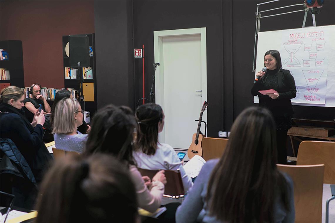 Das erste Treffen gestern hatte das Thema "Verfasse einen Text" zum Inhalt. Eine entscheidende Kompetenz für alle, die sich mit der Welt der Kommunikation befassen. Begleitet wurde das Frühstücks-Event von Musik und Tänzen der 26-jährigen Liedermacherin Giulia Martinelli aus Meran. Sie sprach von ihrer persönlichen Herangehensweise beim Verfassen eines musikalischen Textes und leitete auf diese Weise die darauffolgende Publikumsdiskussion ein. "Ein brillantes Projekt, das den Geist von Impulsi Vivi hundertprozentig widerspiegelt, nämlich neue Ideen im kreativen und kulturellen Bereich zu entwickeln und umzusetzen", beschrieb Vettorato die Kulturinitiative.