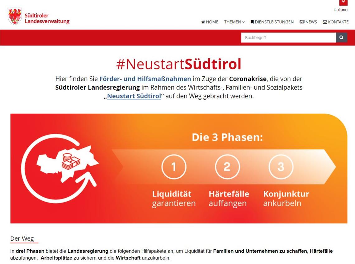 Alle Informationen und Ansprechpartner zu den Maßnahmen für Familien, Unternehmen und Arbeitnehmende werden ab kommender Woche auf einer eigenen Internetseite unter https://neustart.provinz.bz.it zu finden sein.