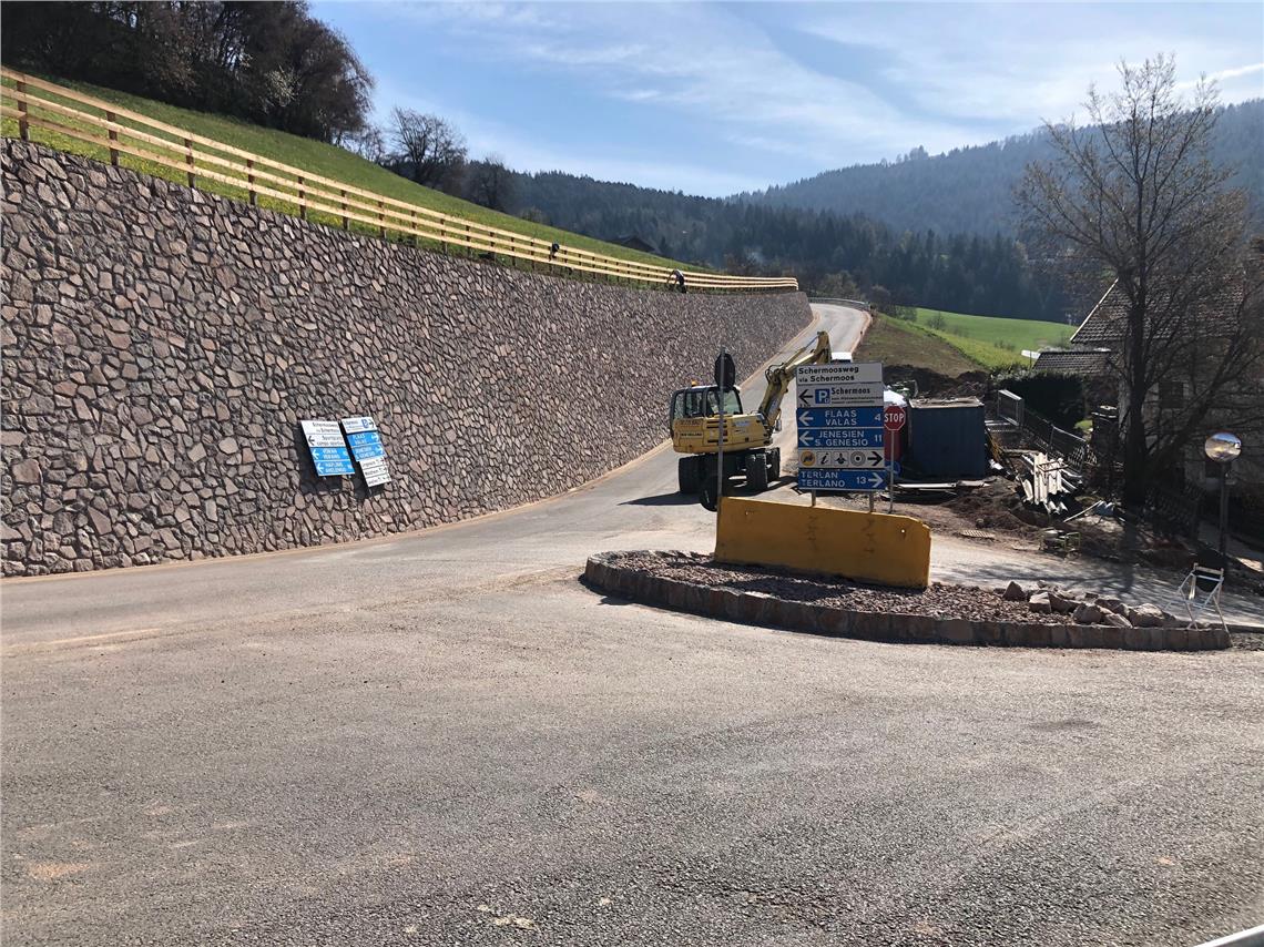 Die Sicherungsarbeiten an der Kreuzung der Landesstraße Jenesien mit der Zufahrt zum Ortskern von Mölten wurden vor Kurzem abgeschlossen. Asphaltiert wird die Strecke im Juli.