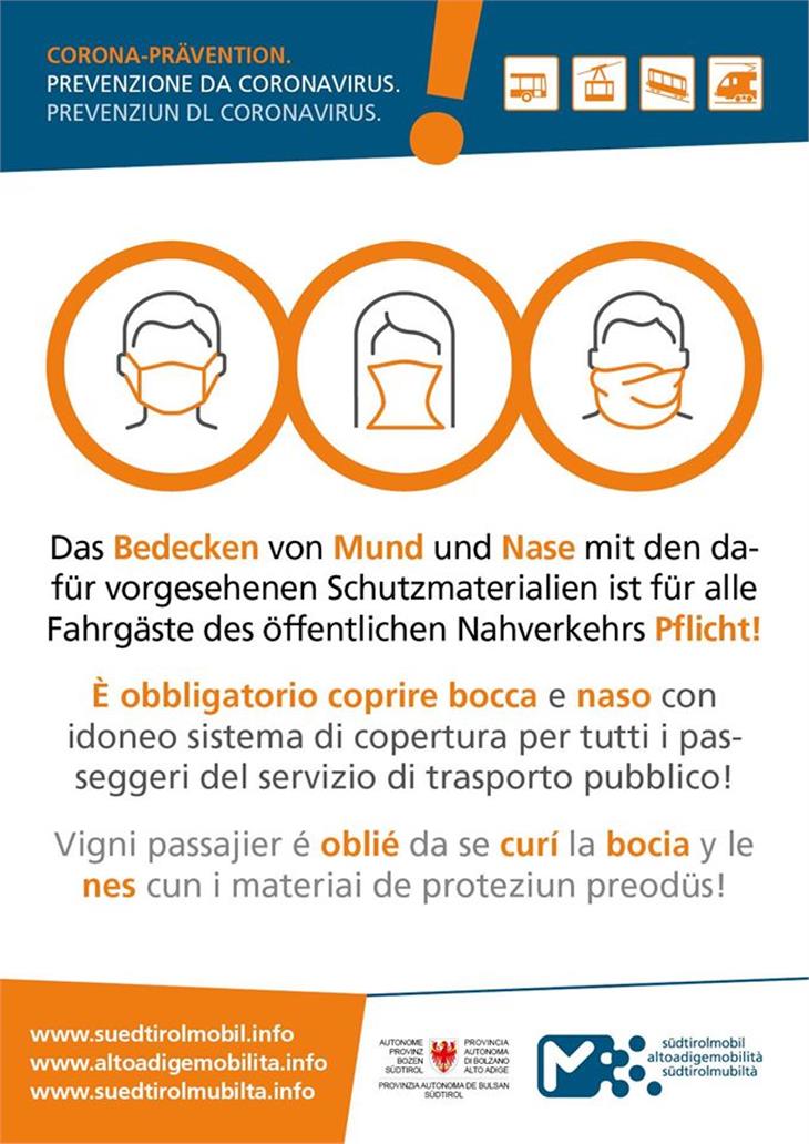 Mobilitätslandesrat Daniel Alfreider betont: "Wir wollen den Menschen die Möglichkeit geben, mit Bus und Bahn zur Arbeit zu fahren, allerdings steht immer der Schutz der Gesundheit an erster Stelle. Mund-Nasen-Schutz, Abstand halten, Stoßzeiten vermeiden und ähnliche Vorsorgemaßnahmen werden für uns alle zur Gewohnheit werden müssen, wenn wir in unsere individuelle und wirtschaftliche Freiheit und ins übliche gesellschaftliche Leben wieder zurückwollen." Die öffentlichen Verkehrsmittel würden sukzessive wieder fahren, allerdings mit strengen Sicherheitsvorschriften, die von allen Fahrgästen einzuhalten sein. "Eigenverantwortung Von jedem von uns ist hier oberstes Gebot", unterstreicht der Landesrat. Von Seiten des Landes jedenfalls, so Alfreider, werde alles daran gesetzt, die Menschen wie gewohnt, pünktlich und sicher aber auch gesund zu transportieren.