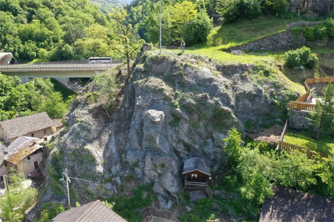 Waidbruck hat die Zone 006 des Gefahrenzonenplans auf der Höhe der Kirchgasse oberhalb der Autobahnbrücke Gröden nach hydrologischen Gefahren überprüfen lassen. Grundlage der Studie sind drei Simulationen der Wirksamkeit von 15 bereits umgesetzten Schutzmaßnahmen. Dazu zählen Felssicherungen mit metallverankerten Drahtseilen, Gitternetze und verschiedene andere Schutzbauten. Das Ergebnis der Studie ermöglichte die Neuklassifizierung der untersuchten Zone, die von der zuständigen Dienststellenkonferenz positiv bewertet wurde: Die Schutzmaßnahmen sichern das Gebiet ausreichend vor den einigermaßen hohen hydrologischen Gefahren. Der Großteil der untersuchten Fläche kann somit auf die Gefährdungsstufe H2 reduziert werden. Auf H3 bleibt weniger als ein Drittel dieser Zone eingestuft.